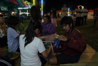 พวกเราเริ่มจัดของกันตั้งแต่ ๕ โมงเย็น พอเริ่มปูเสื่อก็มีคนมาร่วมกิจกรรมทันที เวลาผ่านไปอย่างรวดเร็ว คนมากจนแทบไม่มีเวลาทานข้าว ต้องเข้าผลัดกันเลย เหน่ื่อย แต่ก็สนุก เราเก็บซุ้มกันประมาณ ๒ ทุ่มครึ่ง กว่าจะเสร็จก็เกือบ ๓ ทุ่ม พวงมโหตรออกไปมากกว่า ๑๐๐ พวง น่าปลื้มจริง ๆ